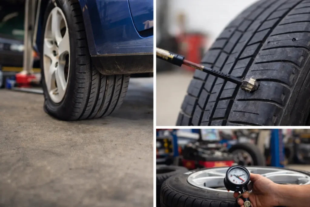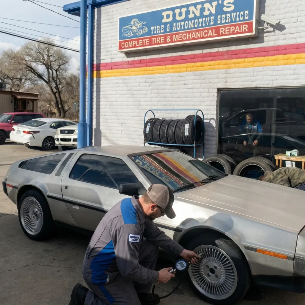 Flat repair, leak detection, and tire safety checks at Dunn’s Tire & Automotive.